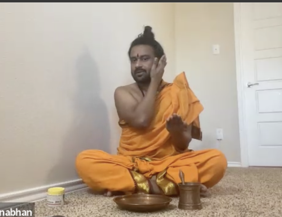 Лео Падманабхан показывает как делать сандхья вандану и бхасма дхарану - ежедневные ритуалы керальских шайва-шактов.